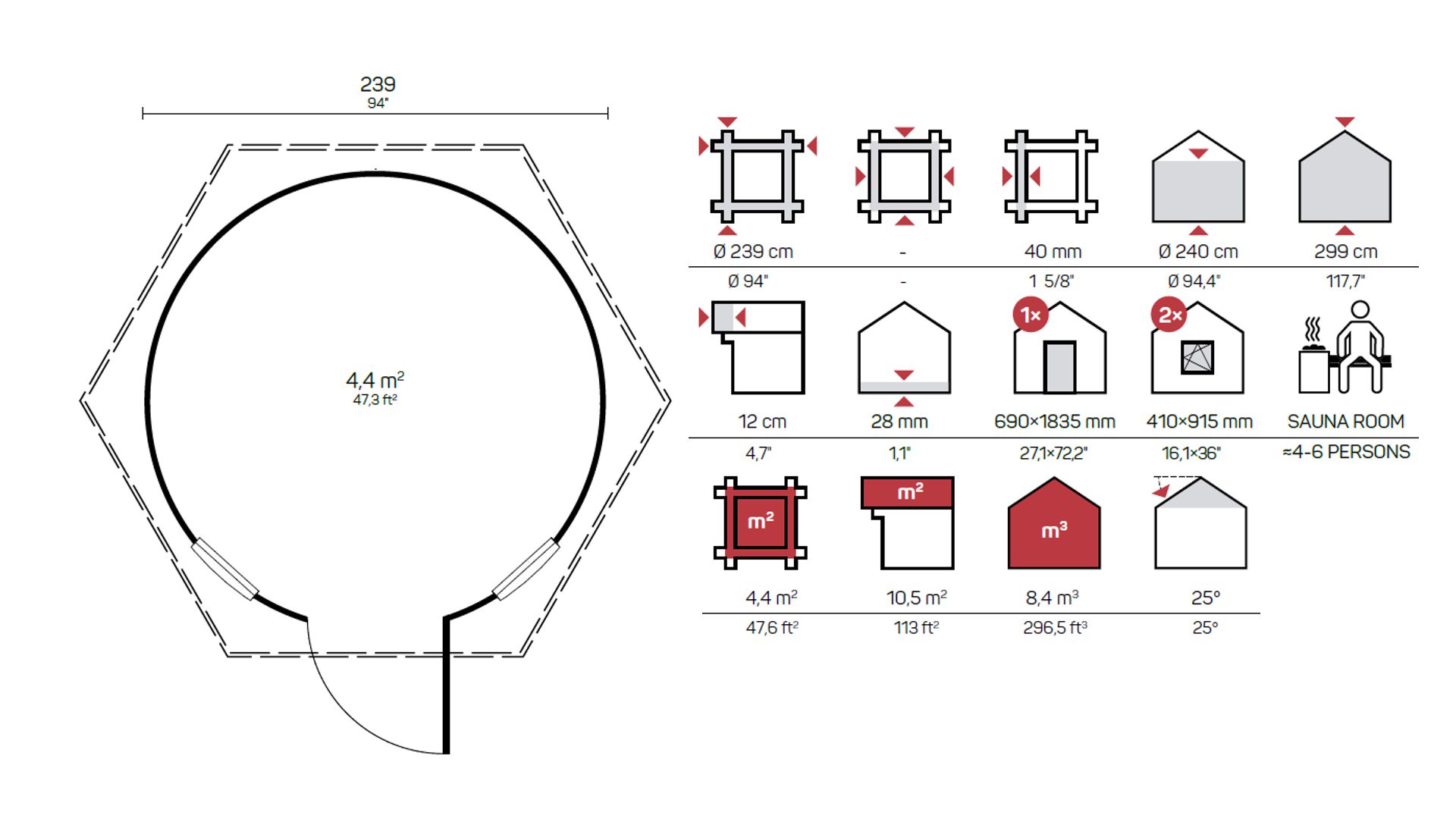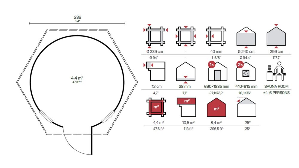 Minden 40 mm-es fa szauna tartalmaz egy szabványos készletet: ajtók, ablakok és rögzítések, amelyek egyszerűvé és gyorssá teszik az összeszerelést.