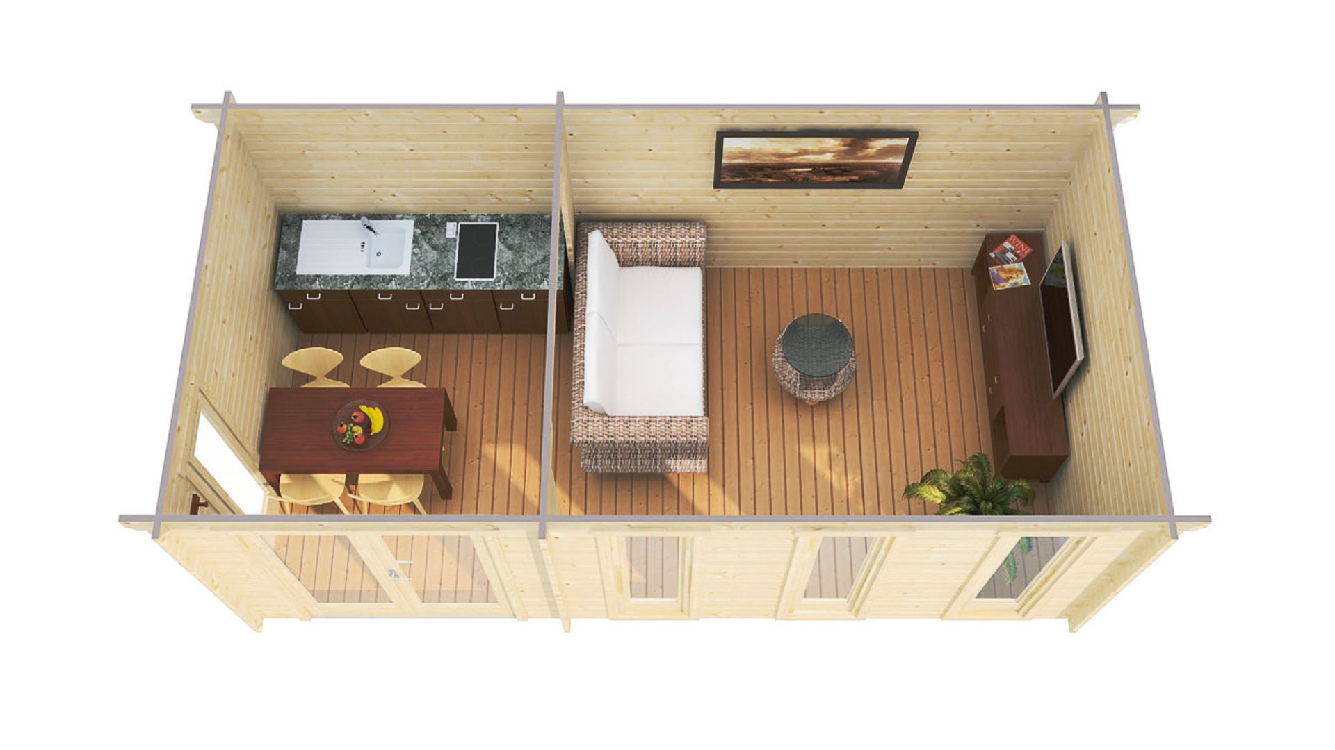 Minden 28 és 40 mm-es faház, játszóház, előtető, nyaraló és garázs tartalmaz egy szabványos készletet: ajtók, ablakok és rögzítések, amelyek egyszerűvé és gyorssá teszik a házak összeszerelését.