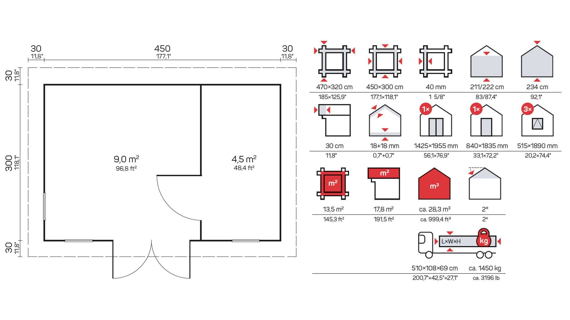 Minden 28 és 40 mm-es faház, játszóház, előtető, nyaraló és garázs tartalmaz egy szabványos készletet: ajtók, ablakok és rögzítések, amelyek egyszerűvé és gyorssá teszik a házak összeszerelését.