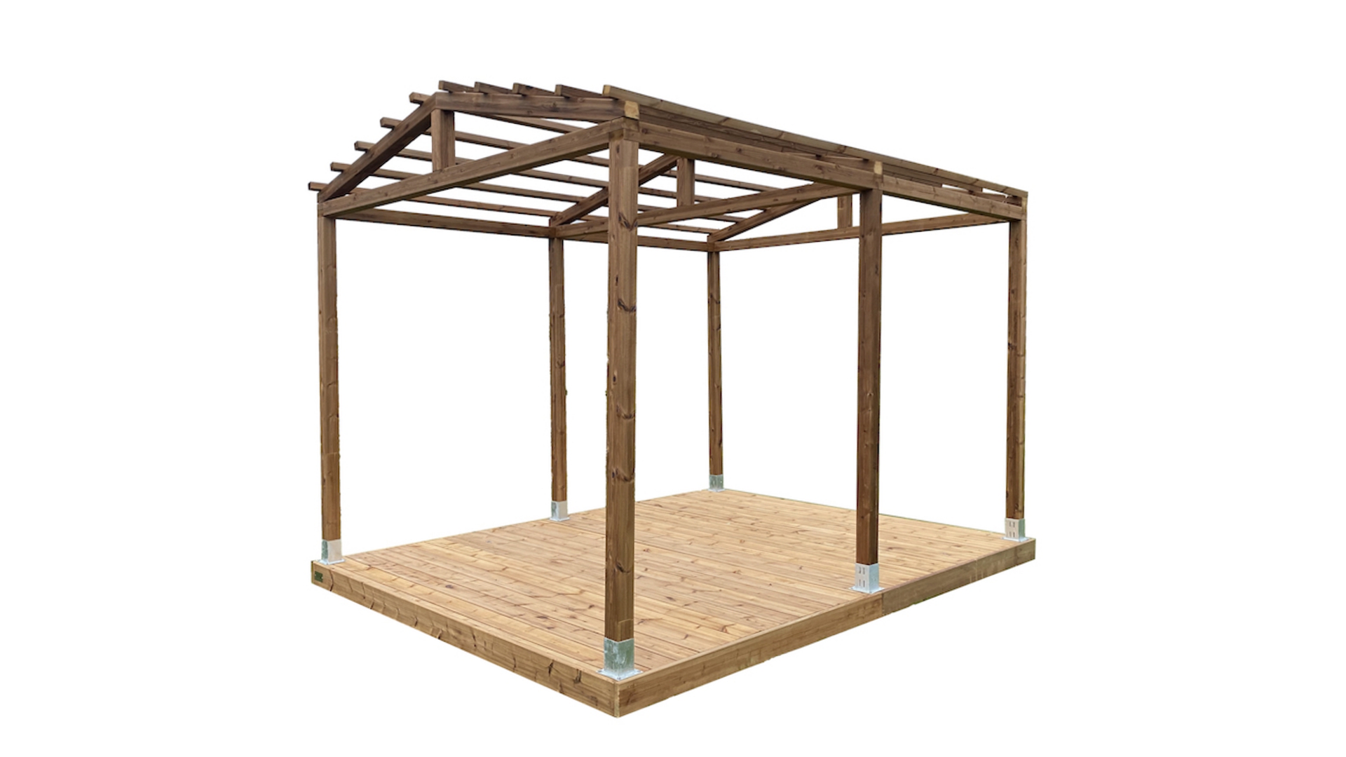 A nyeregtetős pergola a ház mellé, vagy távolabb, például kész terasz mellé, külön egységként helyezhető el. A pergola összeszerelése egyszerű és gyors, az oszlopok lábai már a függőleges oszlopokra vannak helyezve. A nyeregtetős pergolát felülről oszloplábakkal és fedőcsavarokkal rögzítik a teraszhoz. Az összeszereléshez csak csavarhúzó szükséges, minden mást a szállítás tartalmazza.