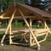 Tetőelemek: A tető lucfenyő deszkából készül, további építőlemez lehetőséggel, amely hosszú távú védelmet biztosít az eső ellen.