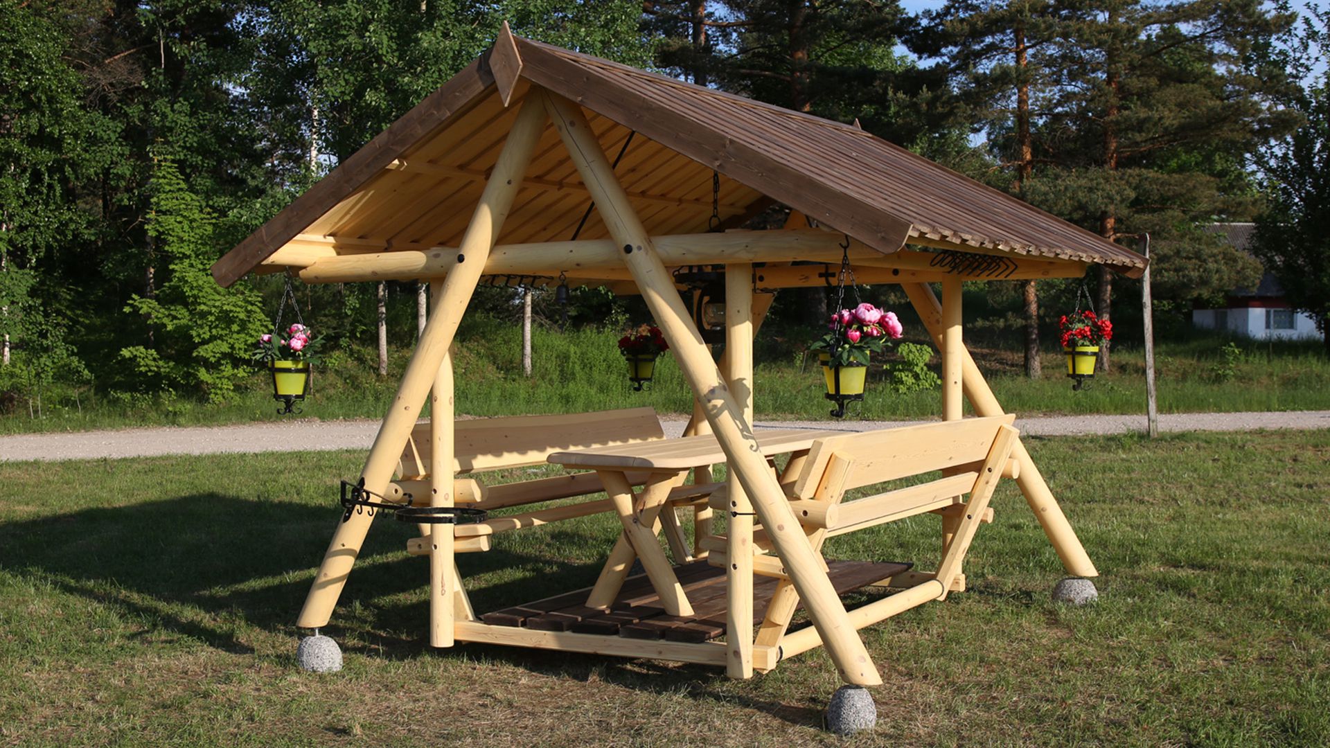 Anyaga: Tartós és környezetbarát fából készült, amely biztosítja a tartósságot és az időjárási viszonyokkal szembeni ellenállást.