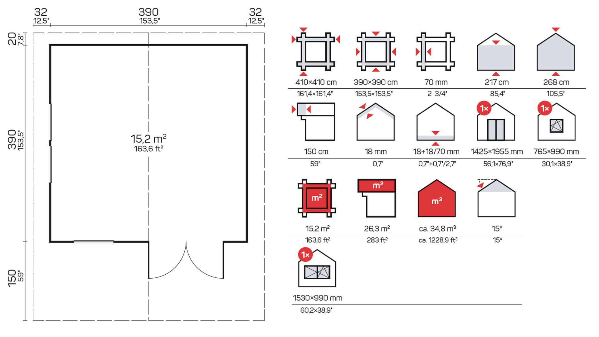 Minden 70 mm-es faház, játszóház, kocsibeálló, nyaraló és garázs szabványos készletet tartalmaz: ajtók, ablakok és rögzítések, amelyek egyszerűvé és gyorssá teszik a házak összeszerelését.
