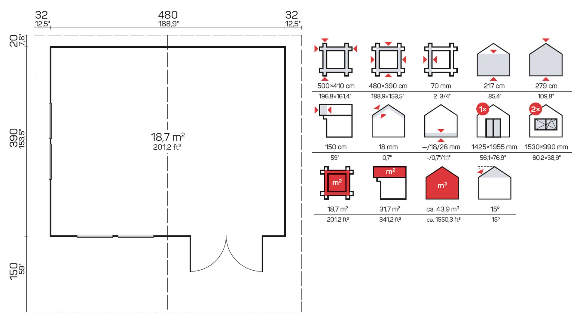 Minden 70 mm-es faház, játszóház, kocsibeálló, nyaraló és garázs szabványos készletet tartalmaz: ajtók, ablakok és rögzítések, amelyek egyszerűvé és gyorssá teszik a házak összeszerelését.