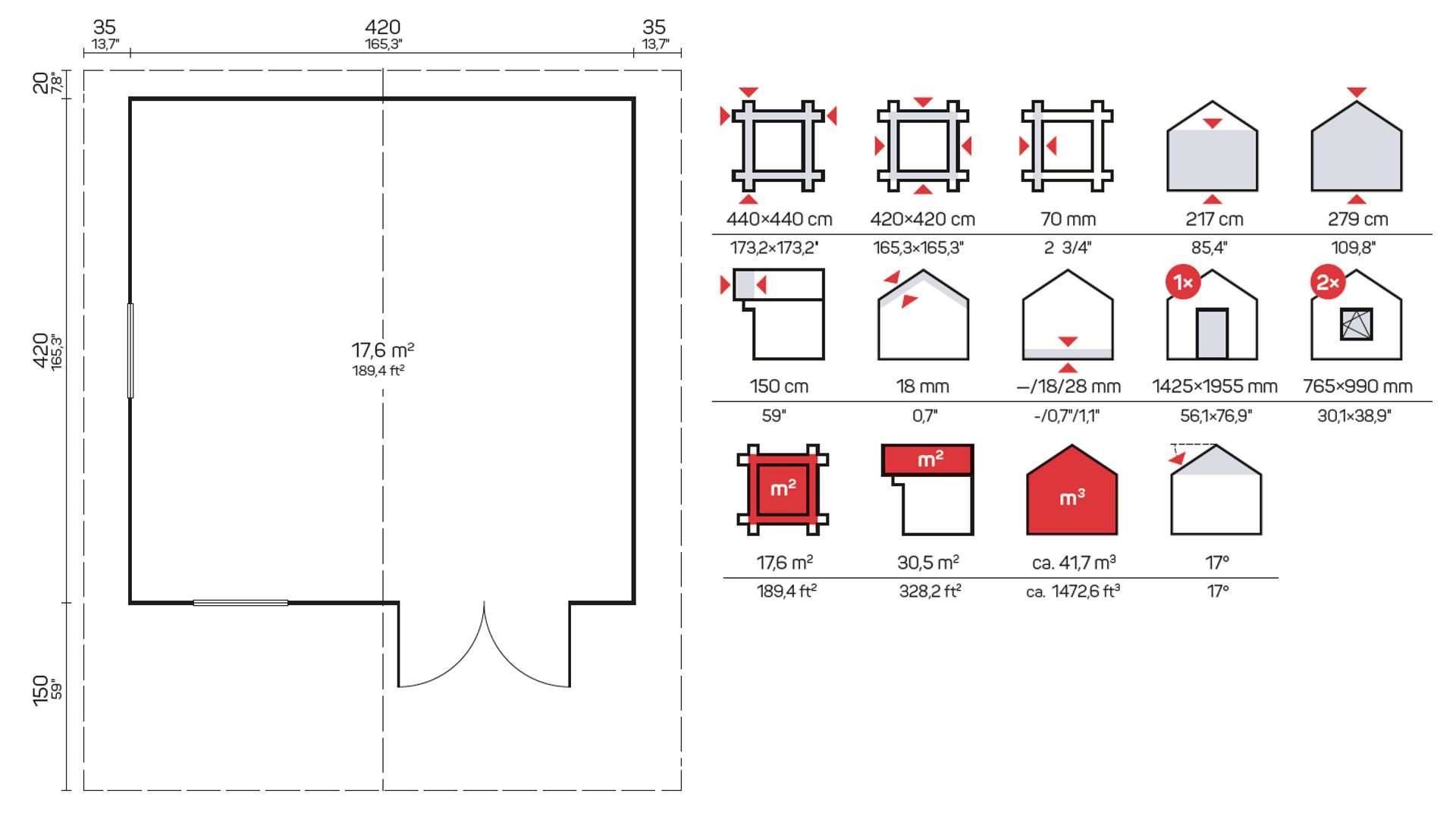 Minden 70 mm-es faház, játszóház, kocsibeálló, nyaraló és garázs szabványos készletet tartalmaz: ajtók, ablakok és rögzítések, amelyek egyszerűvé és gyorssá teszik a házak összeszerelését.
