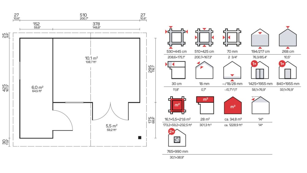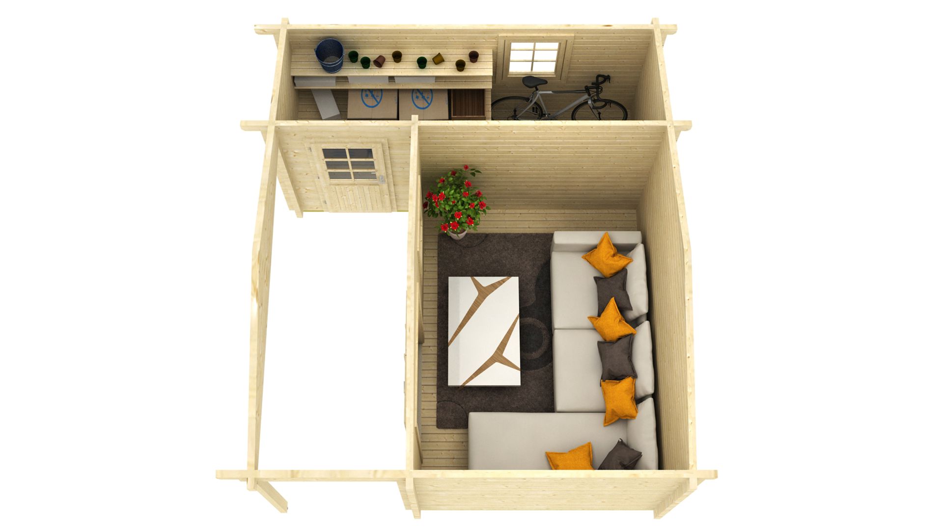Minden 70 mm-es faház, játszóház, kocsibeálló, nyaraló és garázs szabványos készletet tartalmaz: ajtók, ablakok és rögzítések, amelyek egyszerűvé és gyorssá teszik a házak összeszerelését.