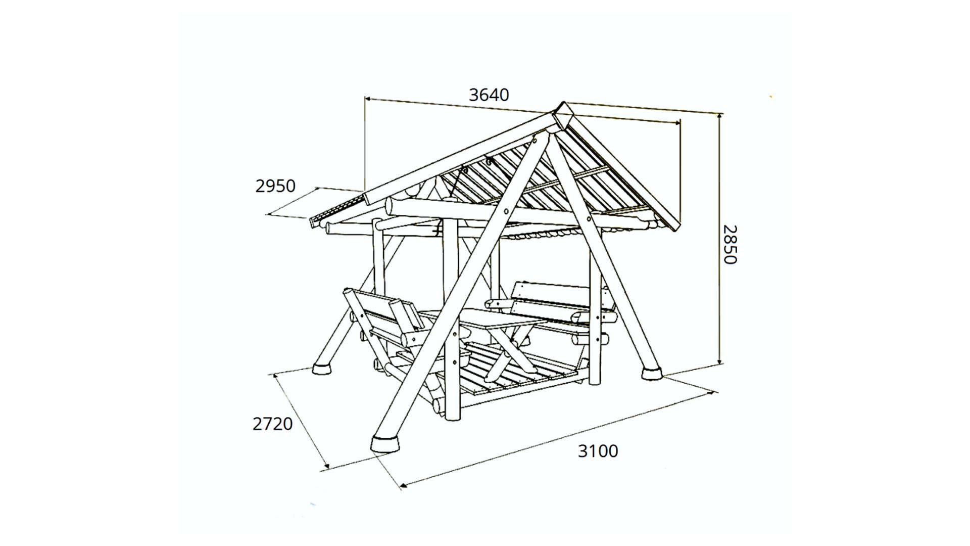 Tetőelemek: A tető lucfenyő deszkából készül, további építőlemez lehetőséggel, amely hosszú távú védelmet biztosít az eső ellen.