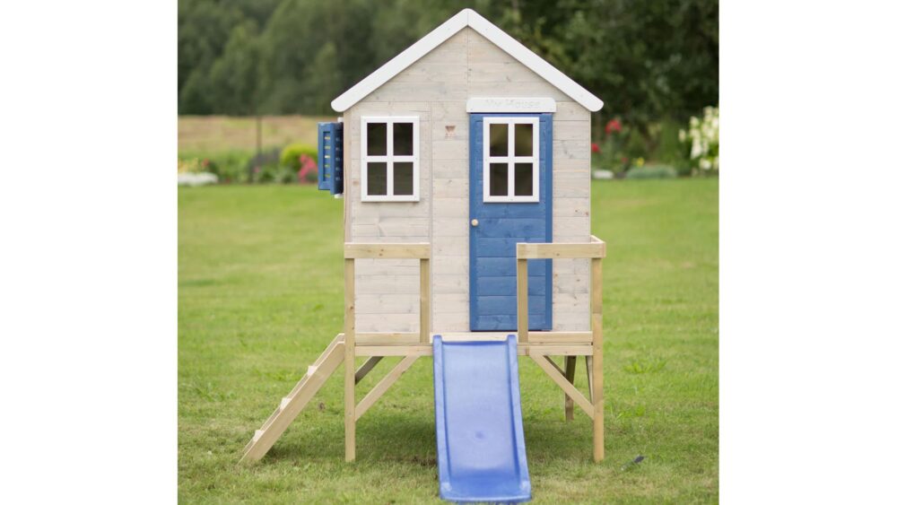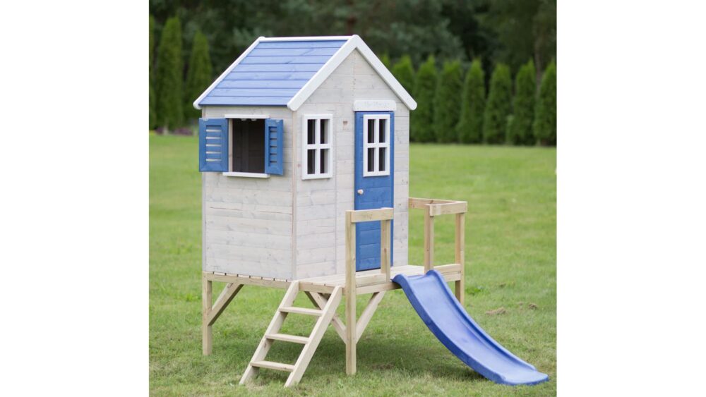 M26B Játszóház platformmal és csúszdával KÉK – tökéletes kiegészítője kertjének a végtelen kreatív és szórakoztató játékidőhöz. Ez a 120 x 80 cm-es játszóház egy gyönyörű, elegáns és modern fából készült játszóház, amely lehetővé teszi, hogy a gyerekek felfedezzék és felfedezzék saját kis világukat a saját kertjük kényelmében, időjárási viszonyoktól függetlenül. Kiválóan alkalmas gyermekprogramokhoz, születésnapi bulikhoz, de akár játékok és kiegészítők tárolására is alkalmas.