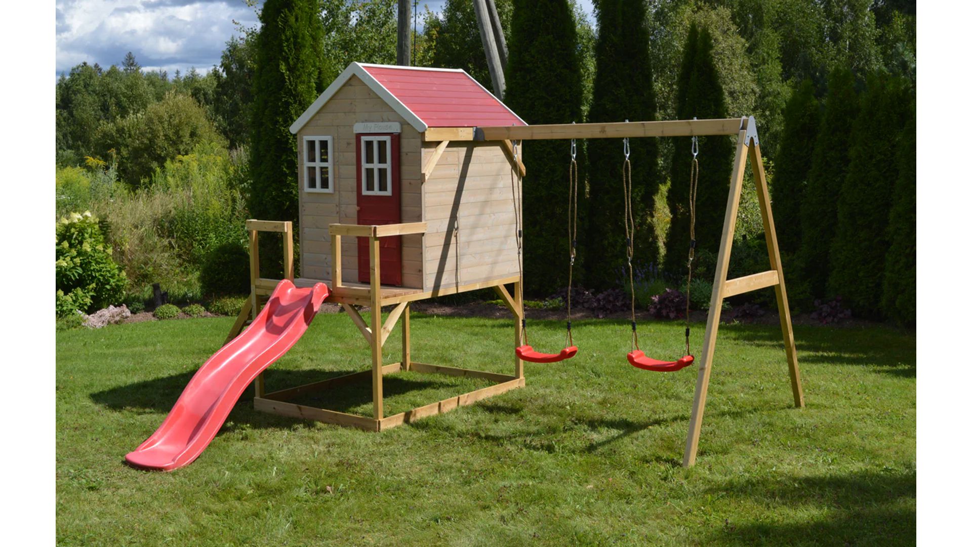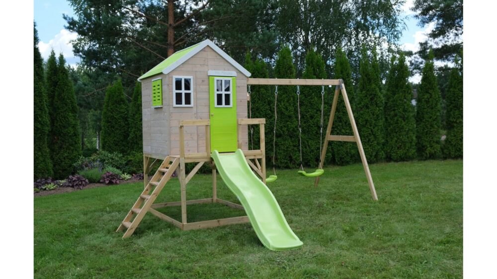 M28 Ház emelvénnyel, csúszdával és dupla hintával