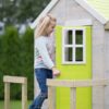 Ez a My Lodge sorozatú játszóház két zárt ablakkal és egy plexi biztonsági műanyag üveggel ellátott teljes ajtóval rendelkezik, hogy napközben is világosabb legyen a játszóház. A játszóház egyik oldalán elegáns redőnyök találhatók, amelyek kinyithatók, hogy több friss levegő jusson a játszótérbe, vagy zárható, hogy nagyobb magánéletet biztosítson. Ez a komplett játszóház ideális kültéri használatra, mivel a vízálló tető gondoskodik arról, hogy a belső játszótér mindig száraz legyen.