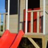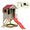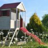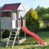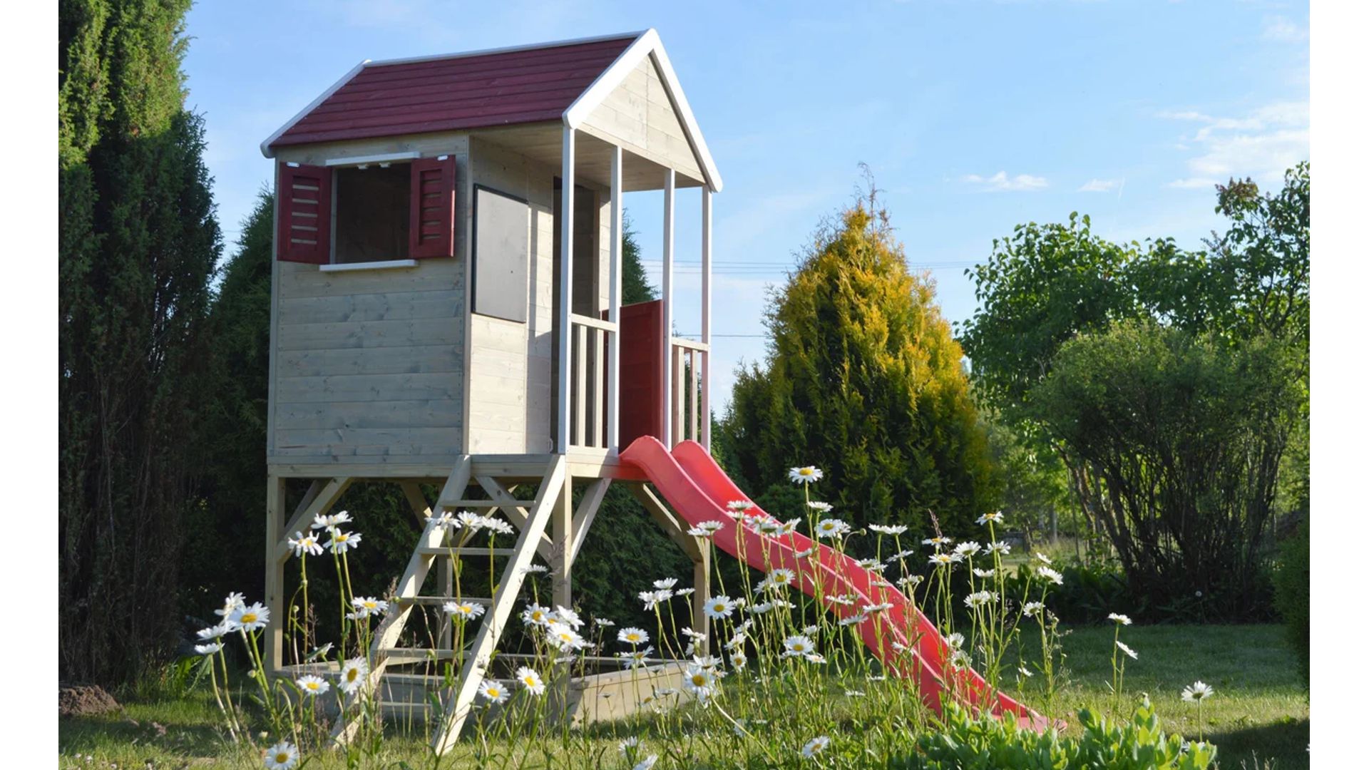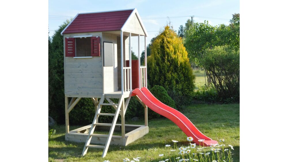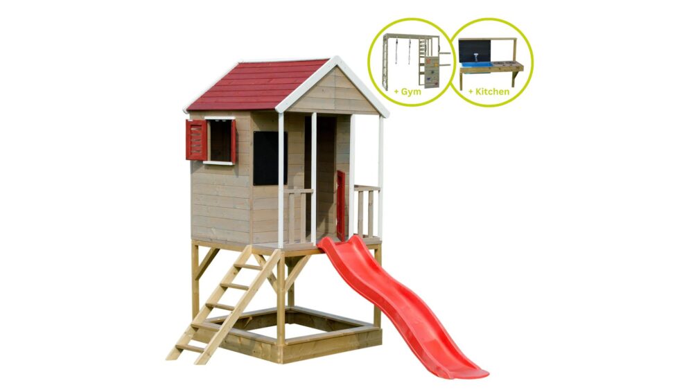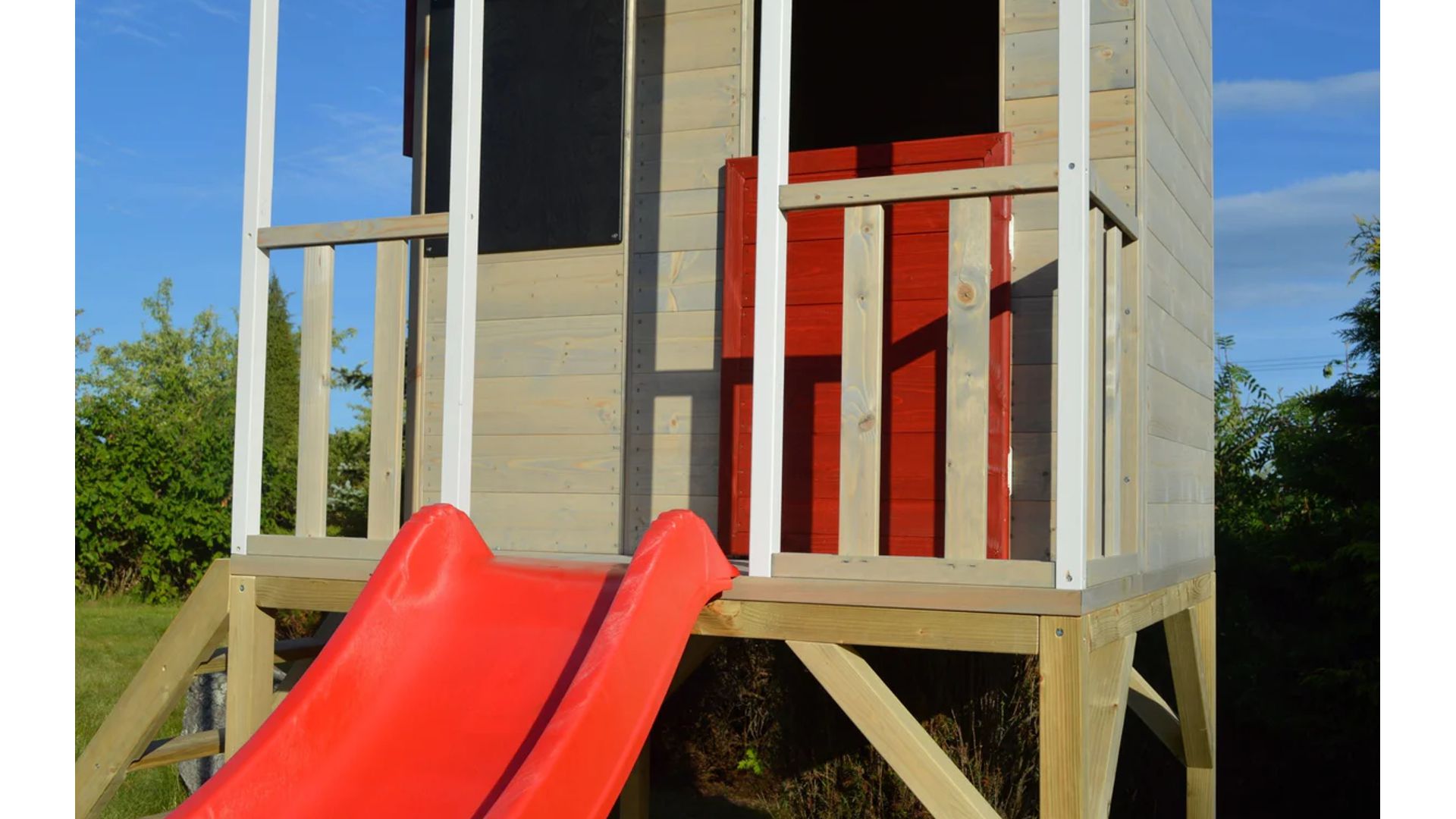 Ezt a 90 cm magas platformra épített játszóházat úgy tervezték, hogy gyermeke aktívan és elkötelezetten maradjon. A platform alatt található egy homokozó, amely tökéletes a kicsik számára, hogy homokvárakat építsenek és felfedezzék kreativitásukat. A játszóház előtt egy zárt, 175 cm hosszú műanyag csúszda található, amely biztosan több órányi izgalmas szórakozást biztosít.