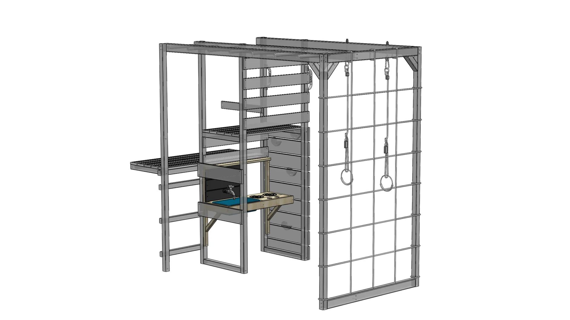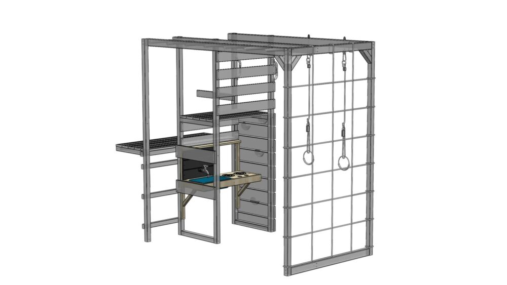 De ez még nem minden – az edzőterem-kiegészítőnek van egy kétszintes, 90 cm-es, illetve 120 cm-es emelvénye is, amely végtelen lehetőséget kínál a fantáziadús játékra és felfedezésre. Akár a magasba másznak, akár egyszerűen csak élvezik a kilátást, gyermekei soha nem fogják megunni ezt a dinamikus és izgalmas kültéri kiegészítőt.