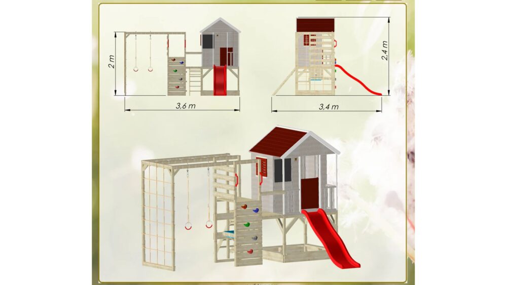 A ház három éves és annál idősebb gyermekek számára alkalmas, minőségének és megjelenésének megőrzése érdekében évenkénti átfestés javasolt. Gyermekei imádni fogják, ha saját helyük van a kertben, ahol időt tölthetnek a barátaikkal és felejthetetlen kalandokat készíthetnek. Ajándékozzon gyermekének izgalmat és fantáziát egy fából készült játszóházzal. Tekintse meg kreativitásuk új magasságokba emelkedését az Adventure Summer House segítségével. Szóval mire vársz? Kezdődjenek a kalandok!