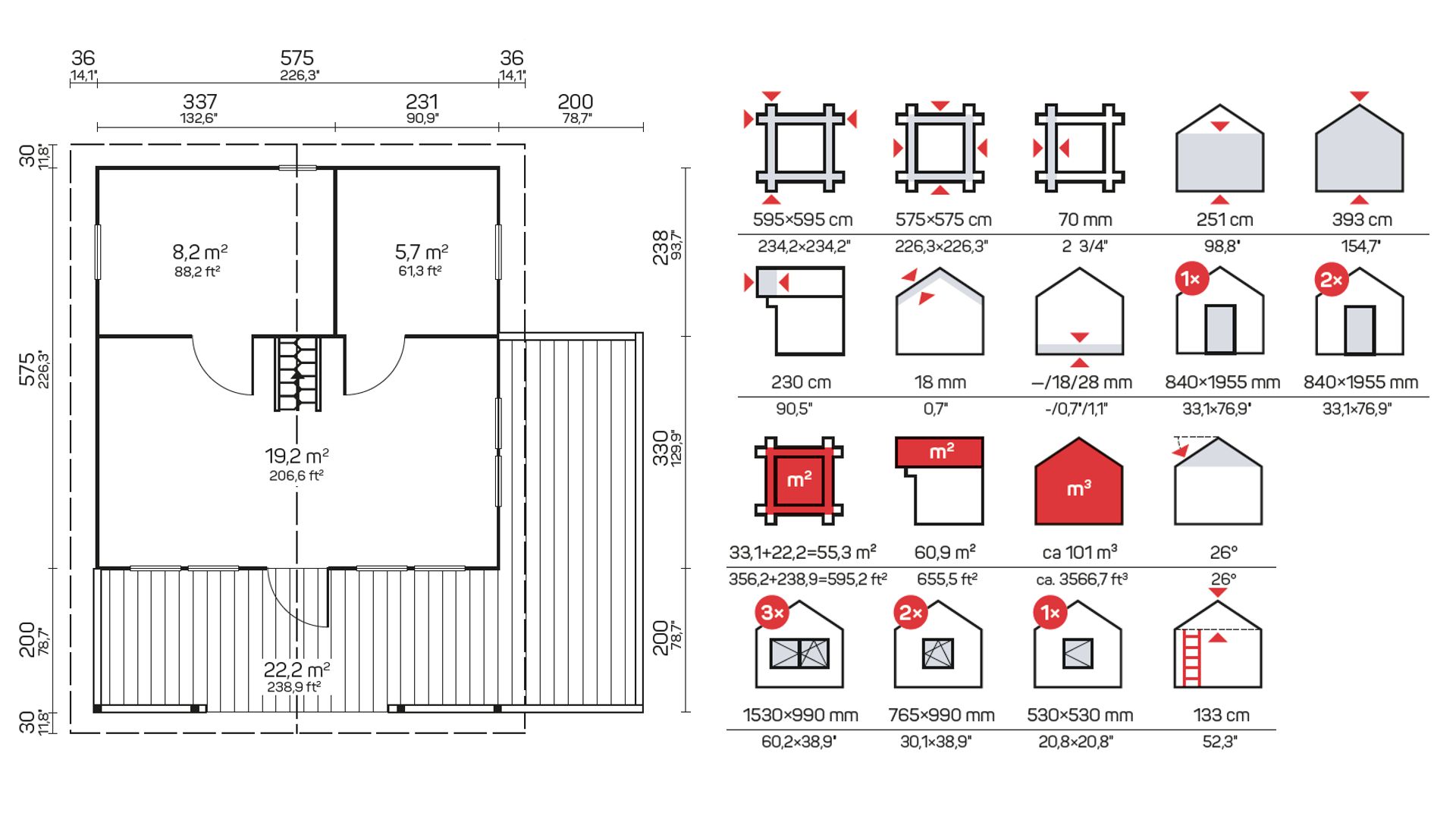 Minden 70 mm-es faház, játszóház, kocsibeálló, nyaraló és garázs szabványos készletet tartalmaz: ajtók, ablakok és rögzítések, amelyek egyszerűvé és gyorssá teszik a házak összeszerelését.