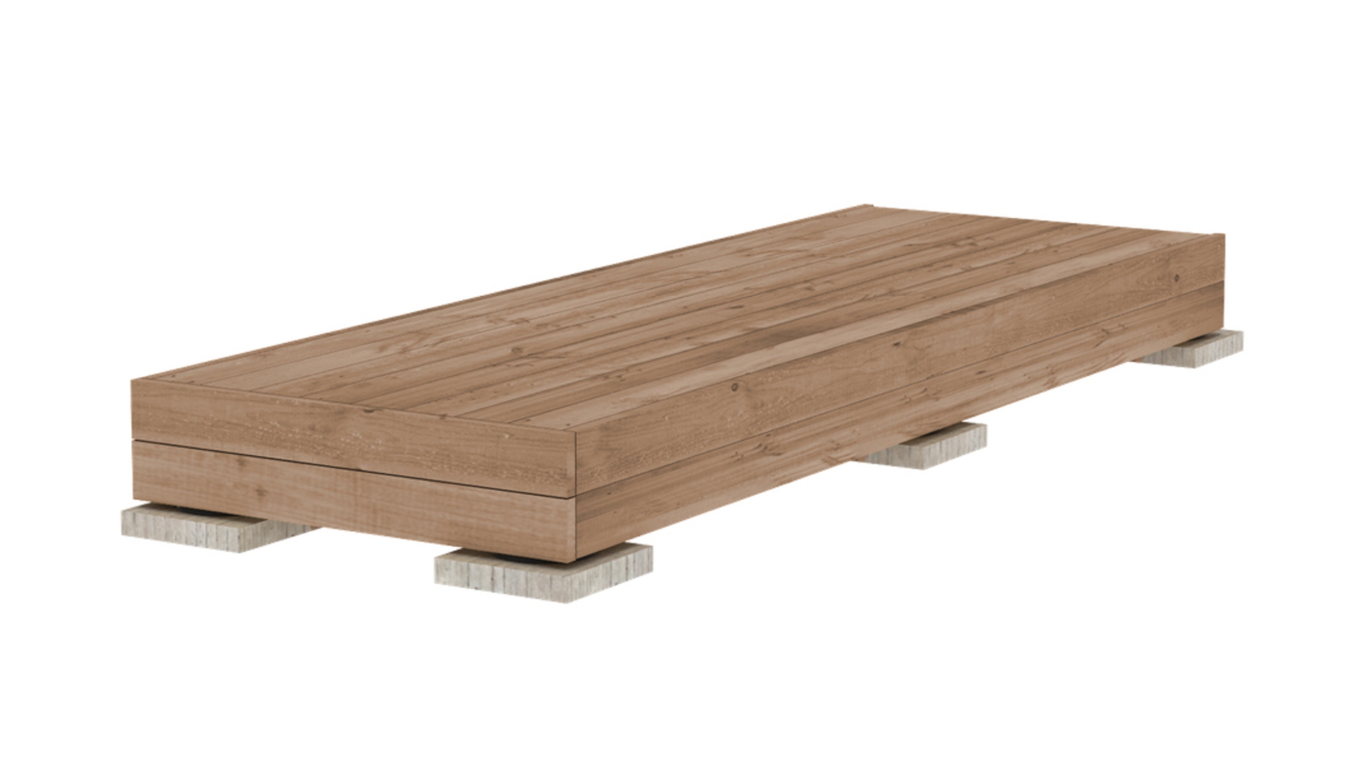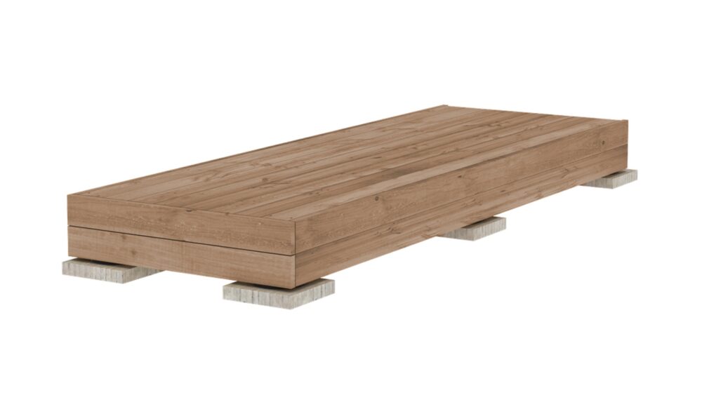 A teraszt 1000 mm x 4000 mm méretű elemként szállítjuk. Az elem súlya akkora, hogy két személy hordozhatja és mozgathatja.