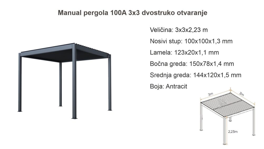 Alumínium pergola 100A 3×3