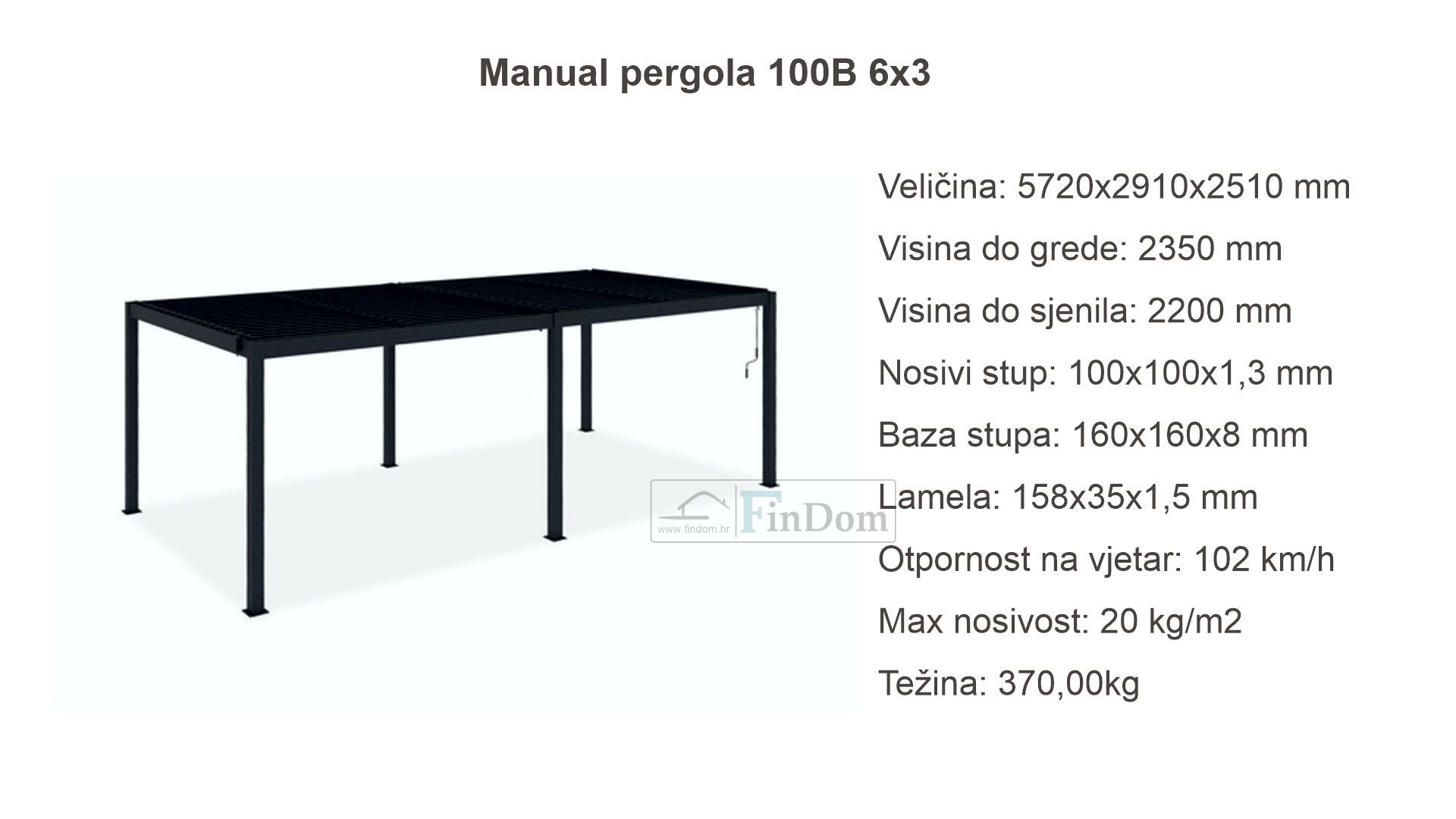 A szélnek, víznek és hónak ellenálló Pergola 100B 6×3 6×3 méteres méretben kapható.