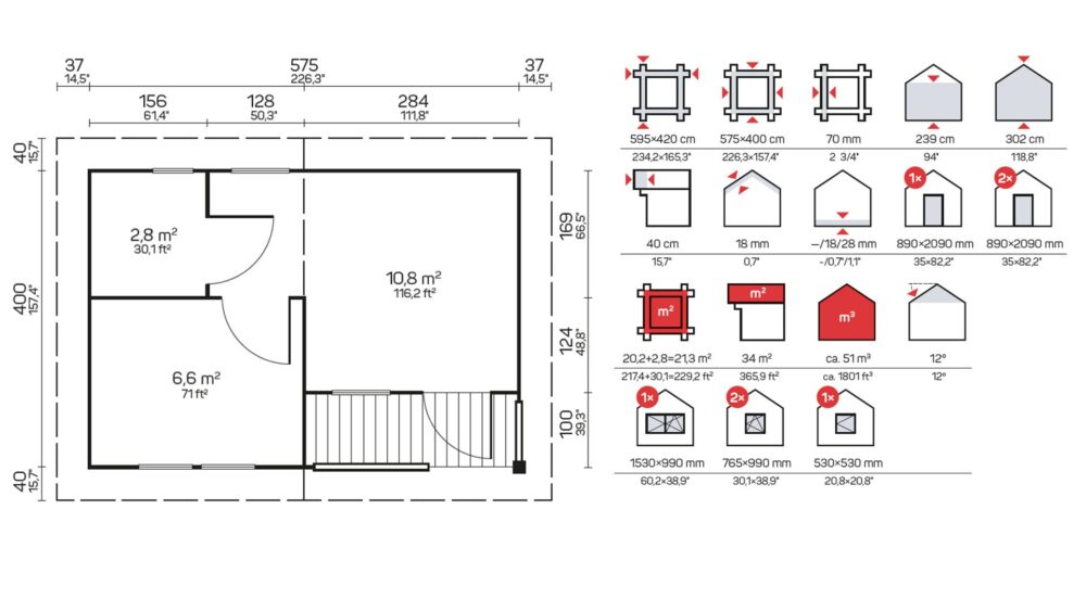 Minden 70 mm-es faház, játszóház, kocsibeálló, nyaraló és garázs szabványos készletet tartalmaz: ajtók, ablakok és rögzítések, amelyek egyszerűvé és gyorssá teszik a házak összeszerelését.