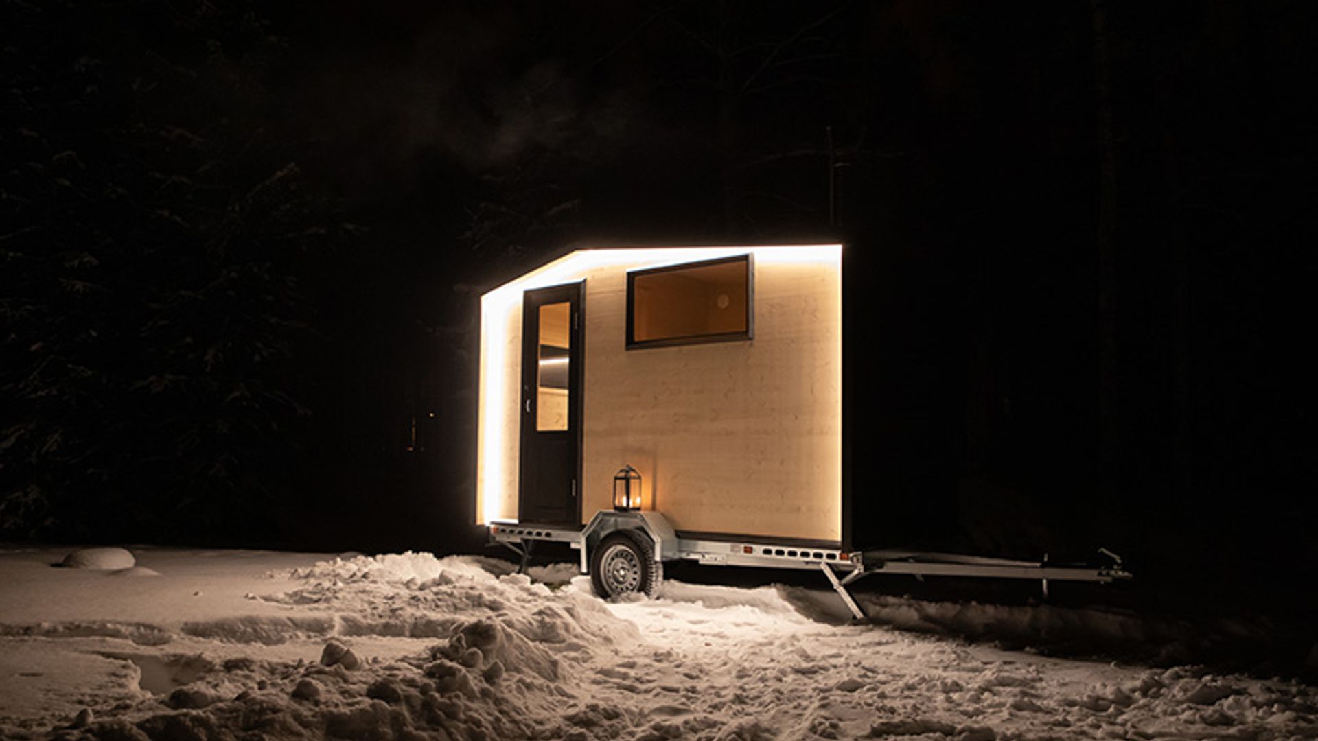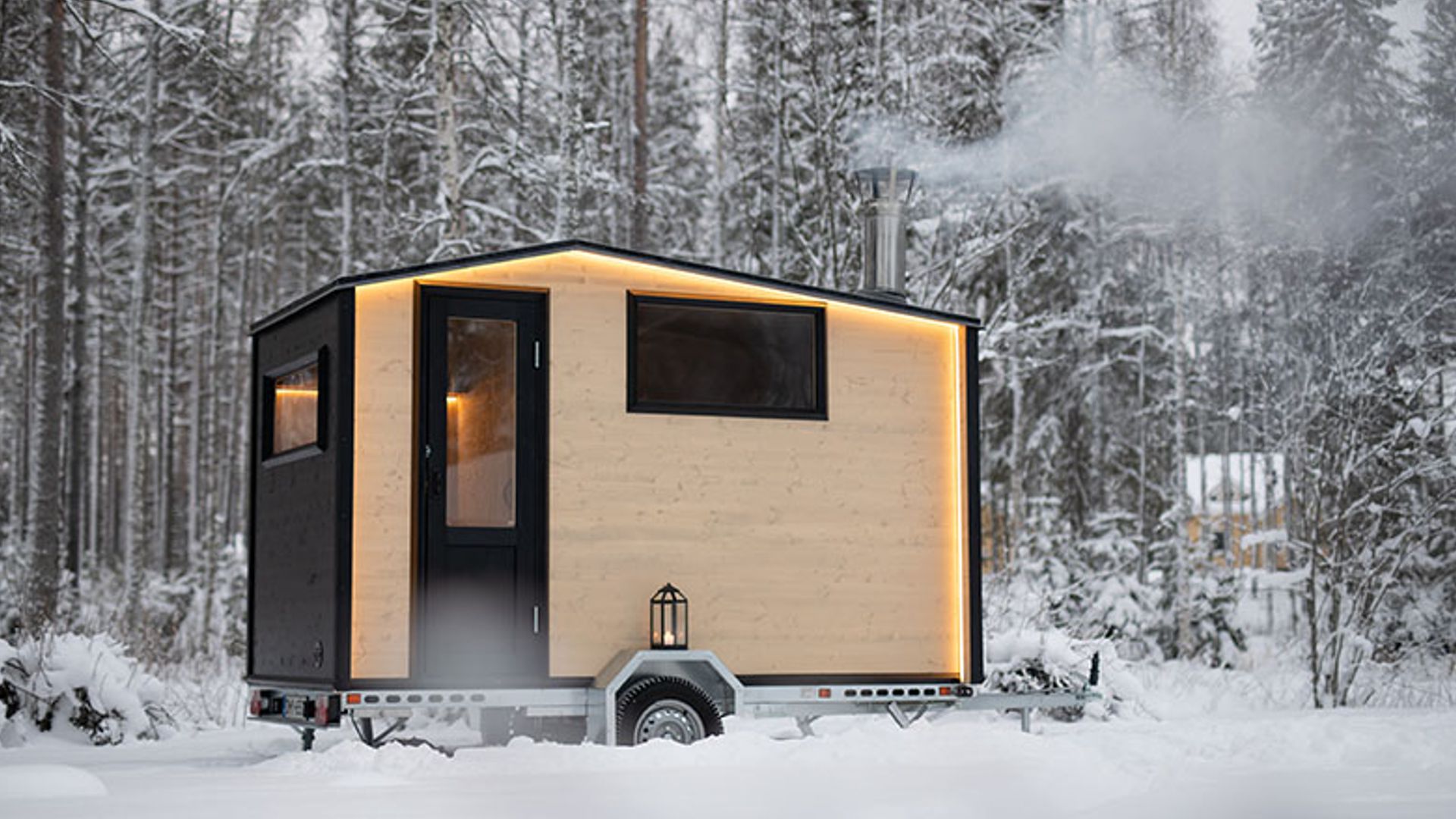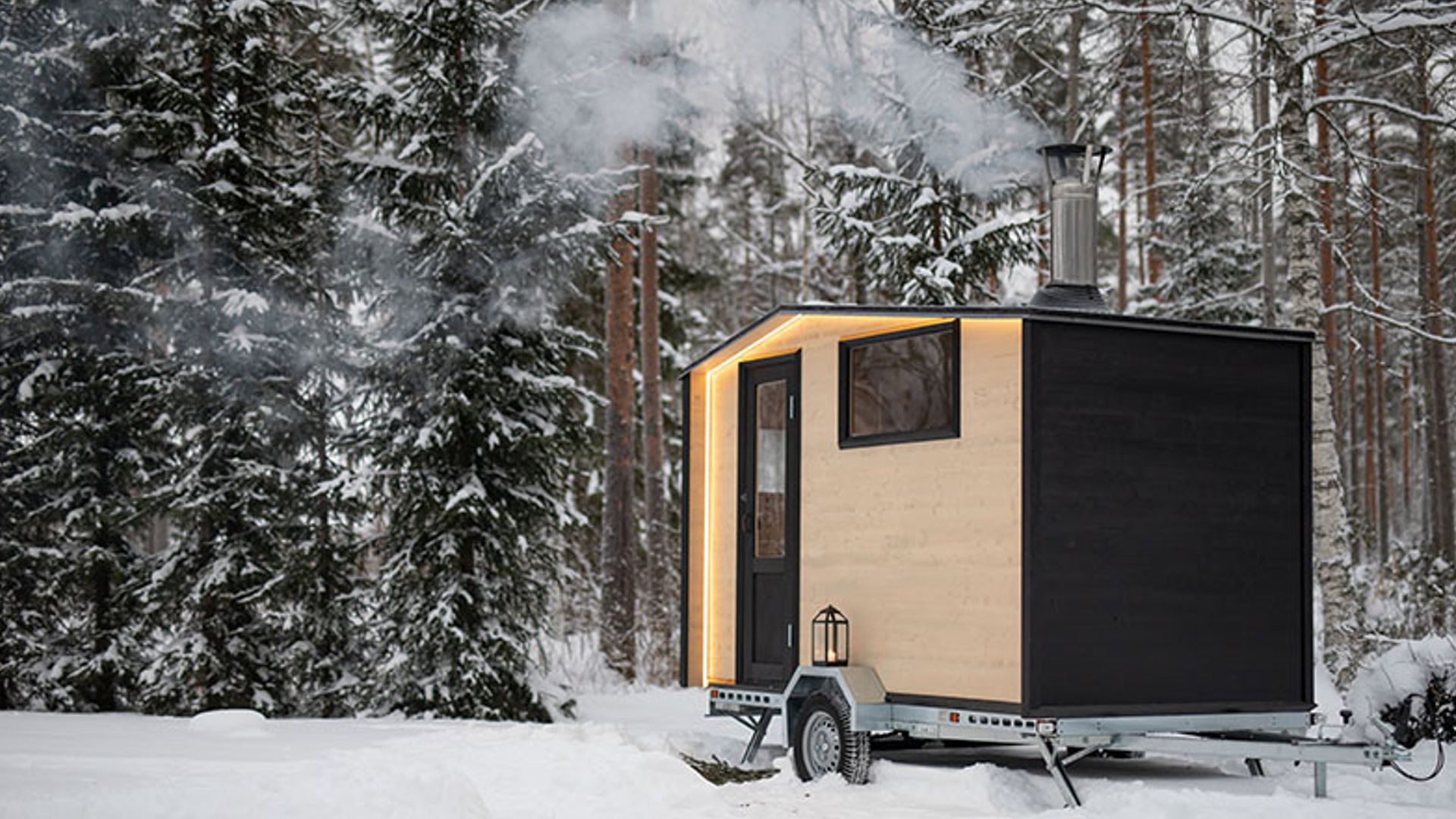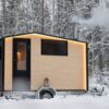 szél és fagy. A mobil szauna felfűtésre kész, így használható
