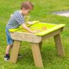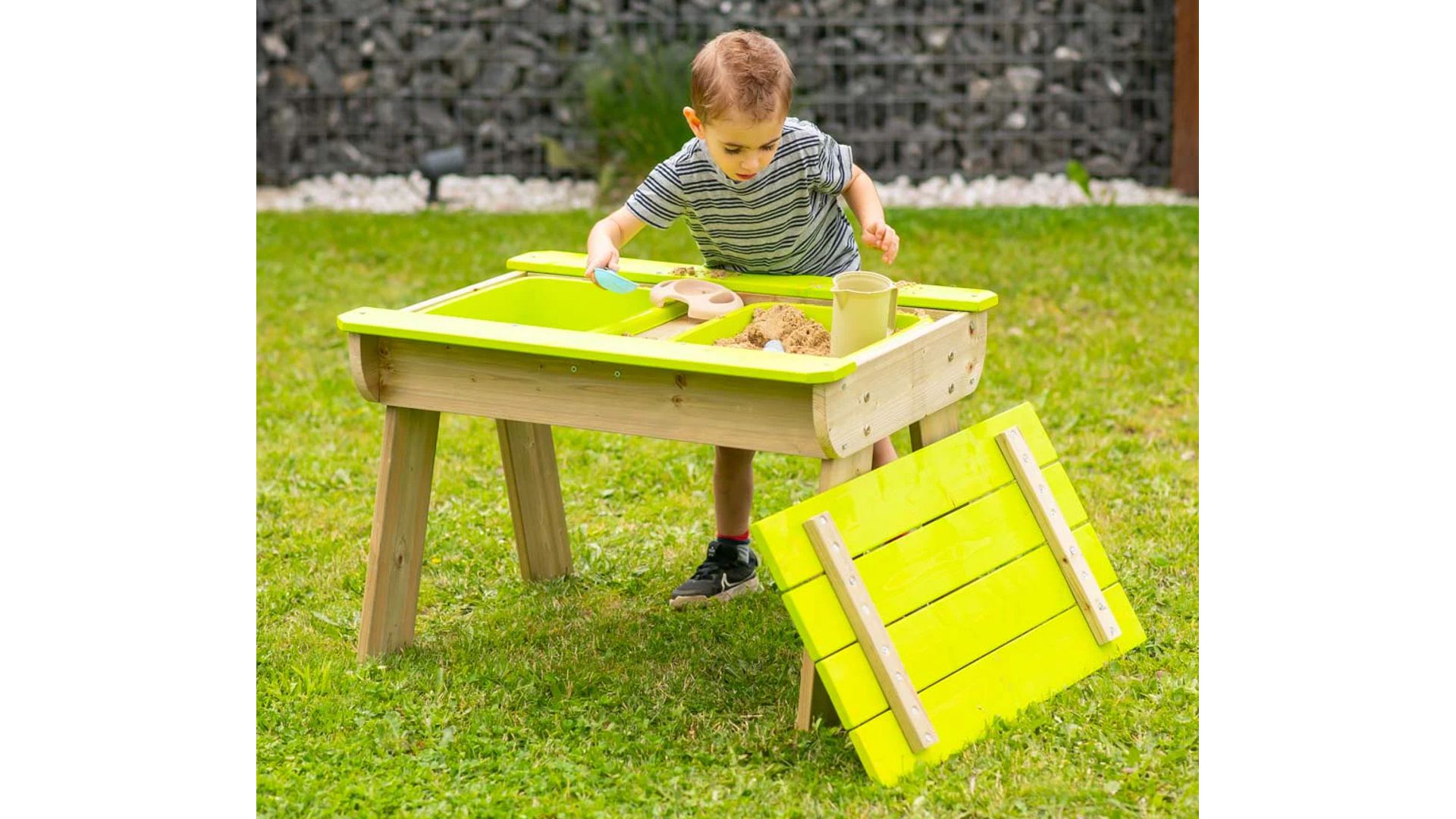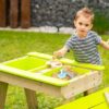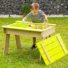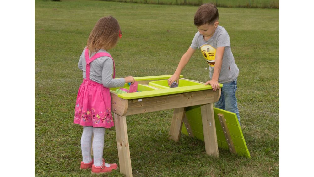 A T1 gyermekpiknikasztal sokoldalú és praktikus kiegészítője minden kisgyermekes családnak. Többcélú kialakítása lehetővé teszi a gyerekek számára, hogy különféle tevékenységekhez használják, beleértve a játékot, a festést, a homokvárak építését vagy a kézműveskedést. Az asztal levehető fedelével rendelkezik, amely két műanyag tálat rejt, amelyeket homokkal vagy vízzel meg lehet tölteni a további szórakozás érdekében. Ezek a tálak könnyen eltávolíthatók tisztításhoz, így a karbantartás gyerekjáték. A huzat szárazon és tisztán tartja a homokot zord időben is, így a gyerekek egész évben élvezhetik az asztalt.