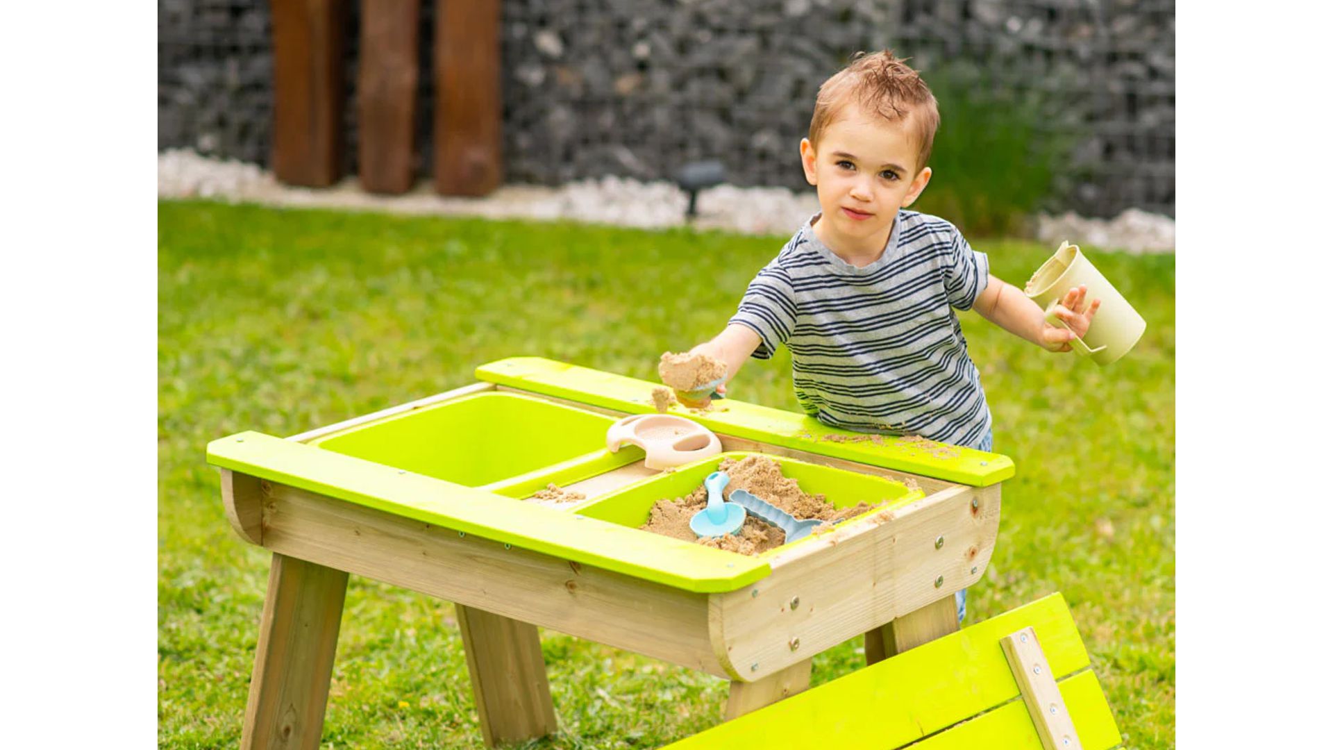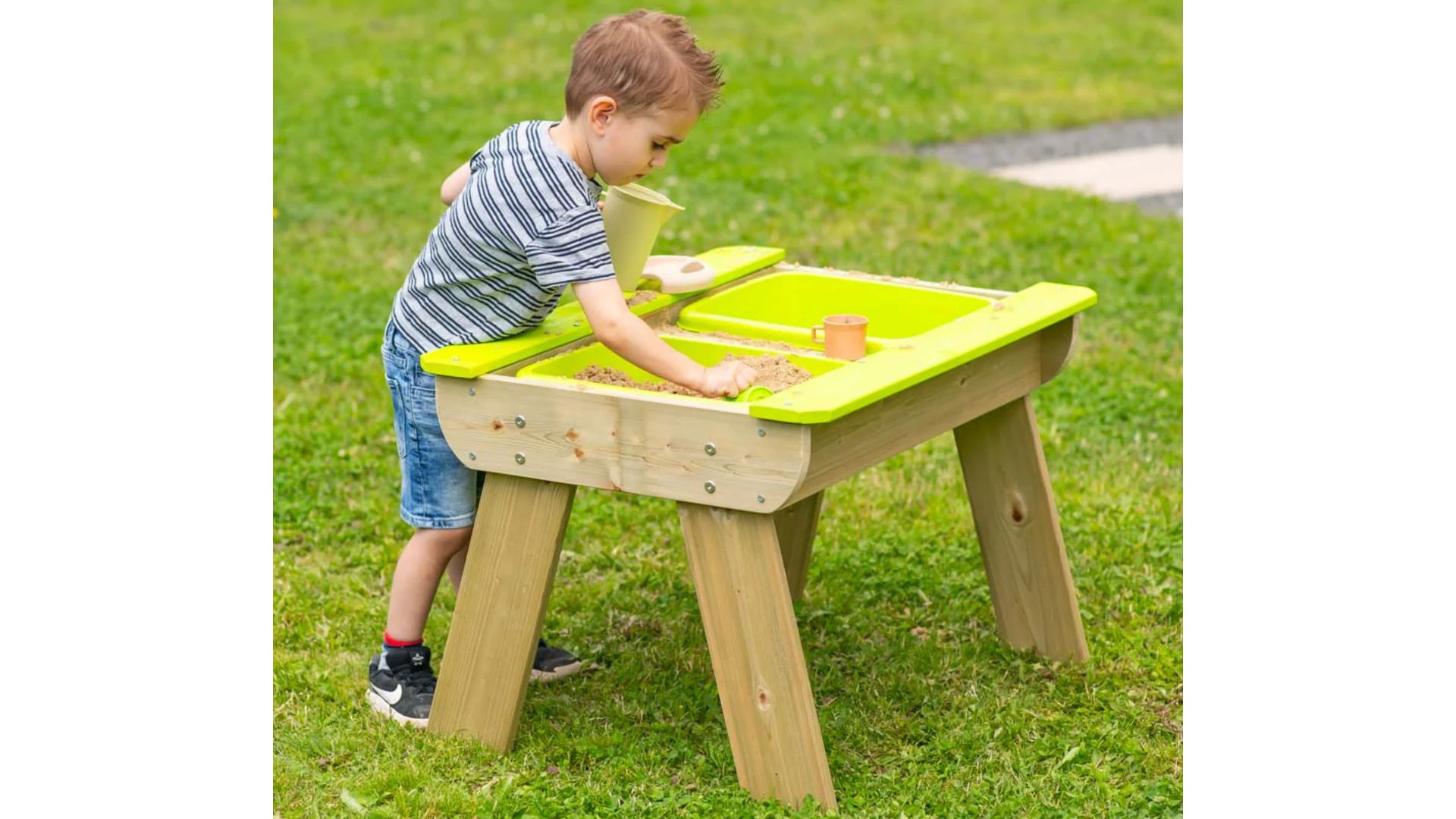 Az impregnált FSC-tanúsítvánnyal rendelkező fából készült T1 gyermekpiknikasztal tartós és környezetbarát. Az asztal felépítése lekerekített élekkel gondoskodik gyermekei biztonságáról, a minőségi kidolgozás pedig hosszú távú használatot garantál. Összességében ez a sokoldalú és biztonságos piknikasztal elengedhetetlen kelléke azoknak a családoknak, akik végtelen kreatív és szabadtéri szórakozást kívánnak biztosítani gyermekeiknek.