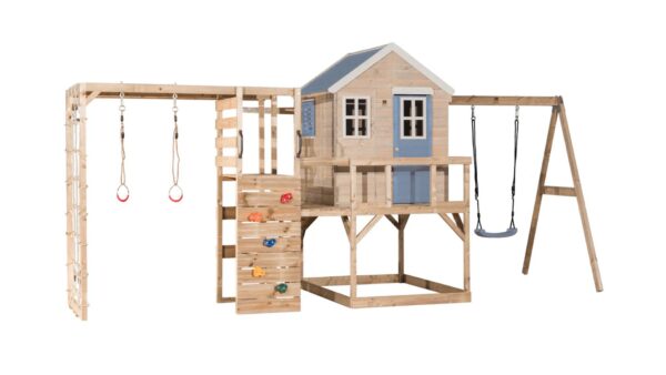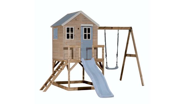 M10R Nordic ház emelvénnyel, csúszdával és egy hintával