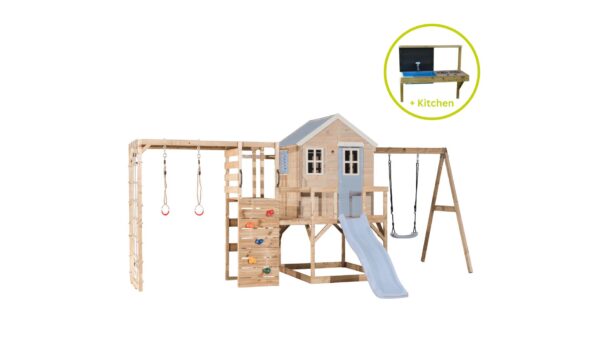 M24-K Ház emelvénnyel, csúszdával és egy hintával + konyhai kiegészítő
